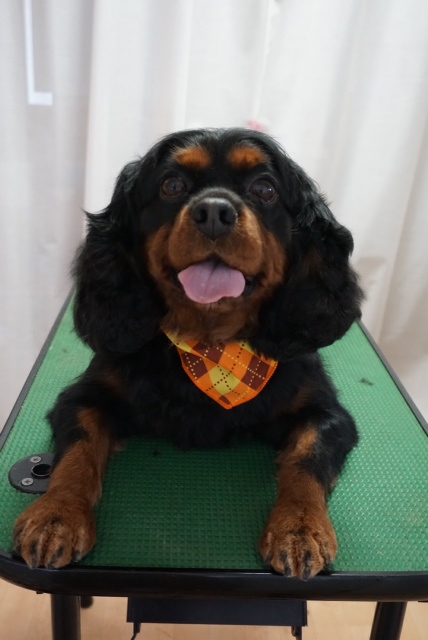 キャバリアのリクくん(*^^*) とても人懐っこく、トリミング中もずっとシッポふりふりでした(^^) アンドレくん(*^^*) 嫌いな爪切りも、しっかり頑張りました(^-^)/ マリンちゃん(*^^*) 今日もシャンプーしてスッキリです♪