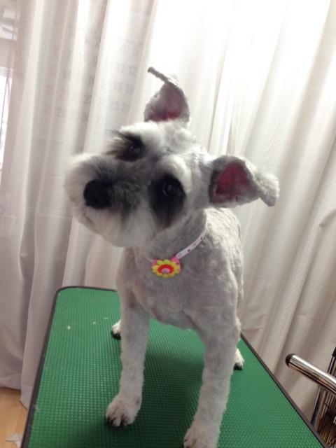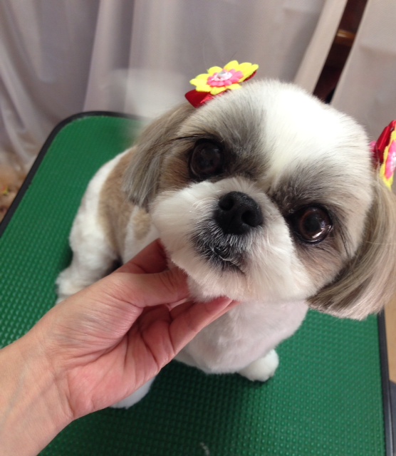 シュナウザーのめめちゃん(*^^*) 全体的に短くなりました☆ おやつ!って言ったら首かしげるんです(^^) シーズーのななみちゃんです(^o^) 元気いっぱいで、トリミング中もずっとしっぽフリフリでした♪ お顔は、女の子らしくまん丸でまつ毛残してます(*^^*)